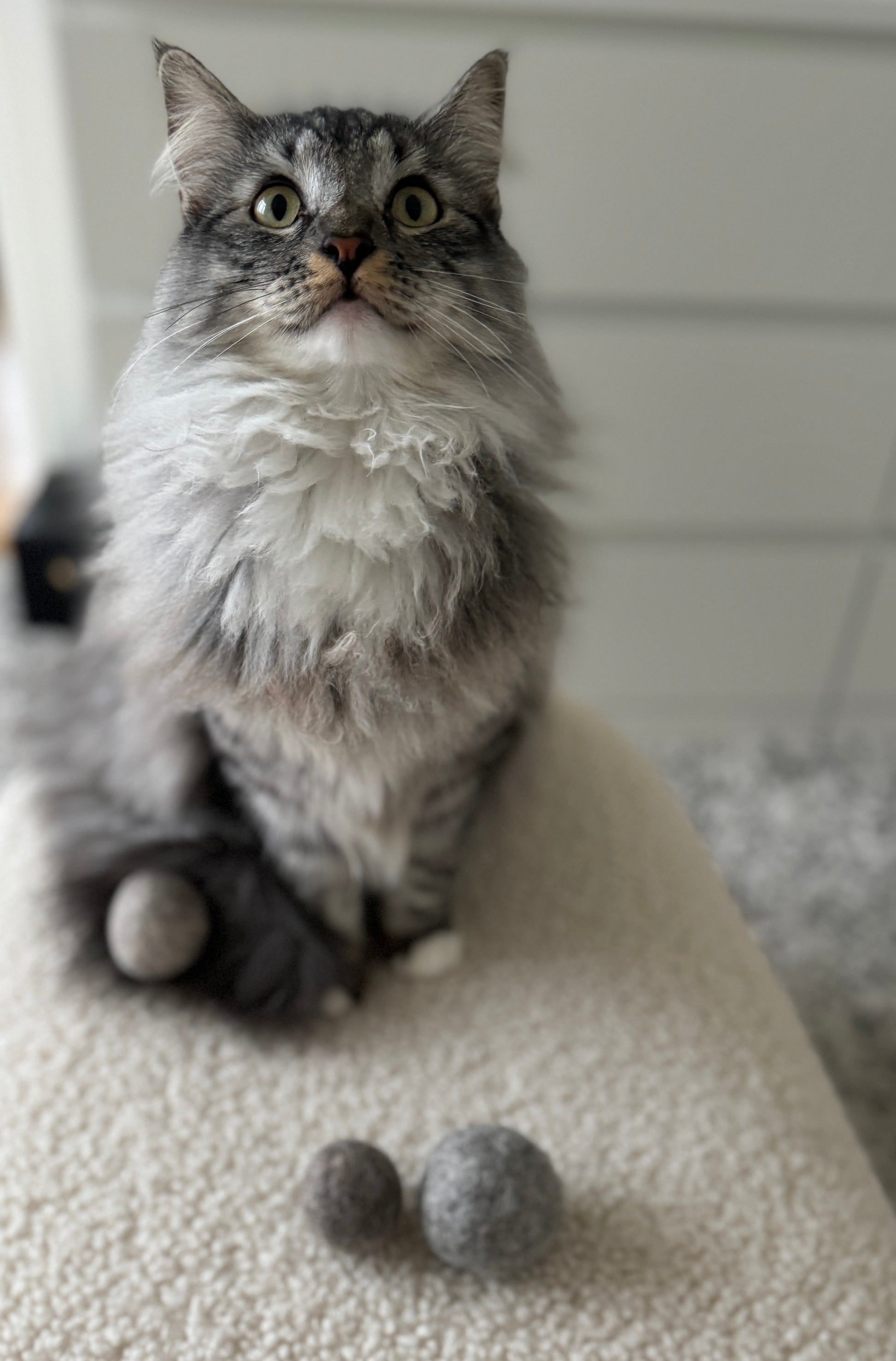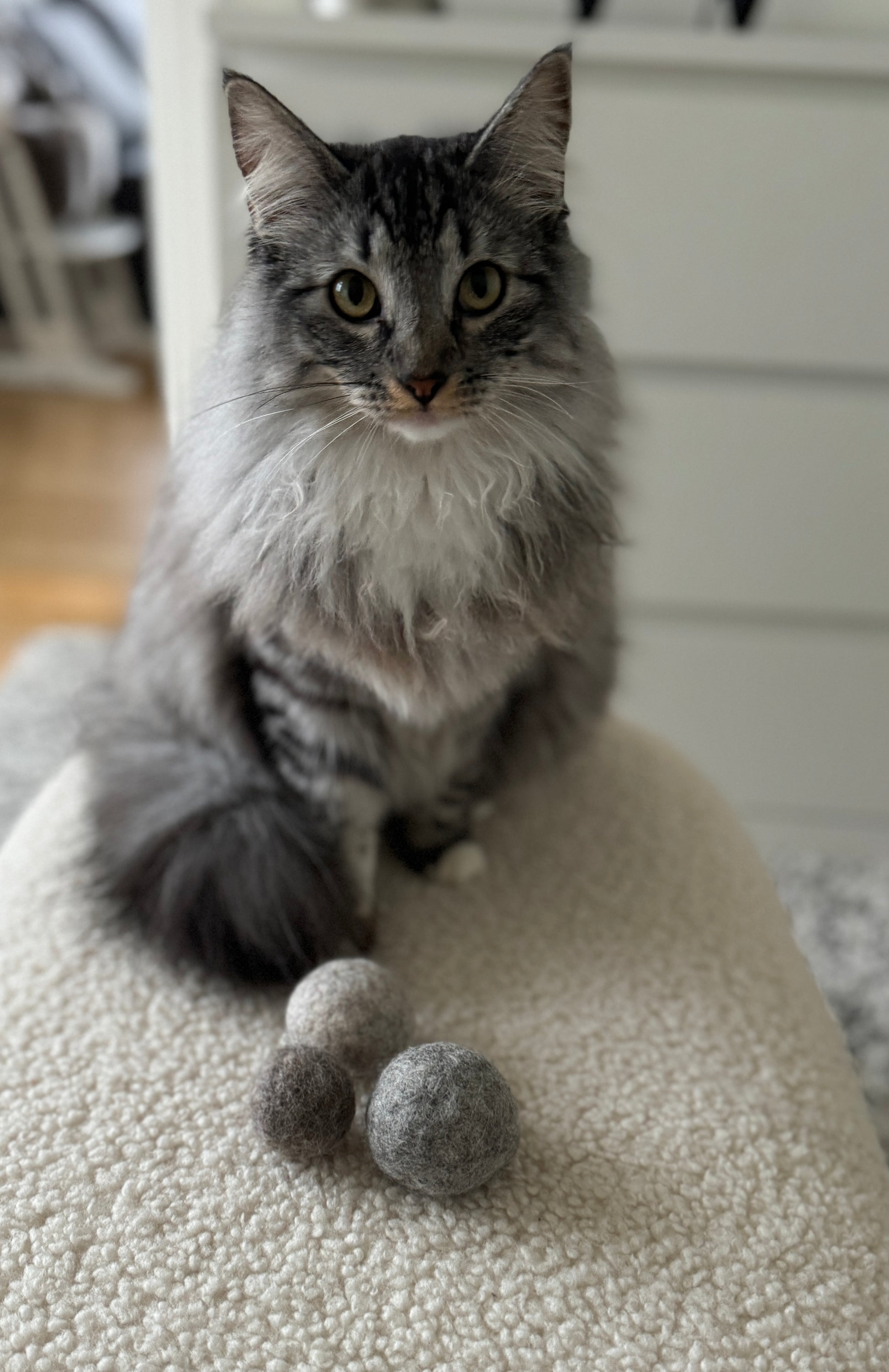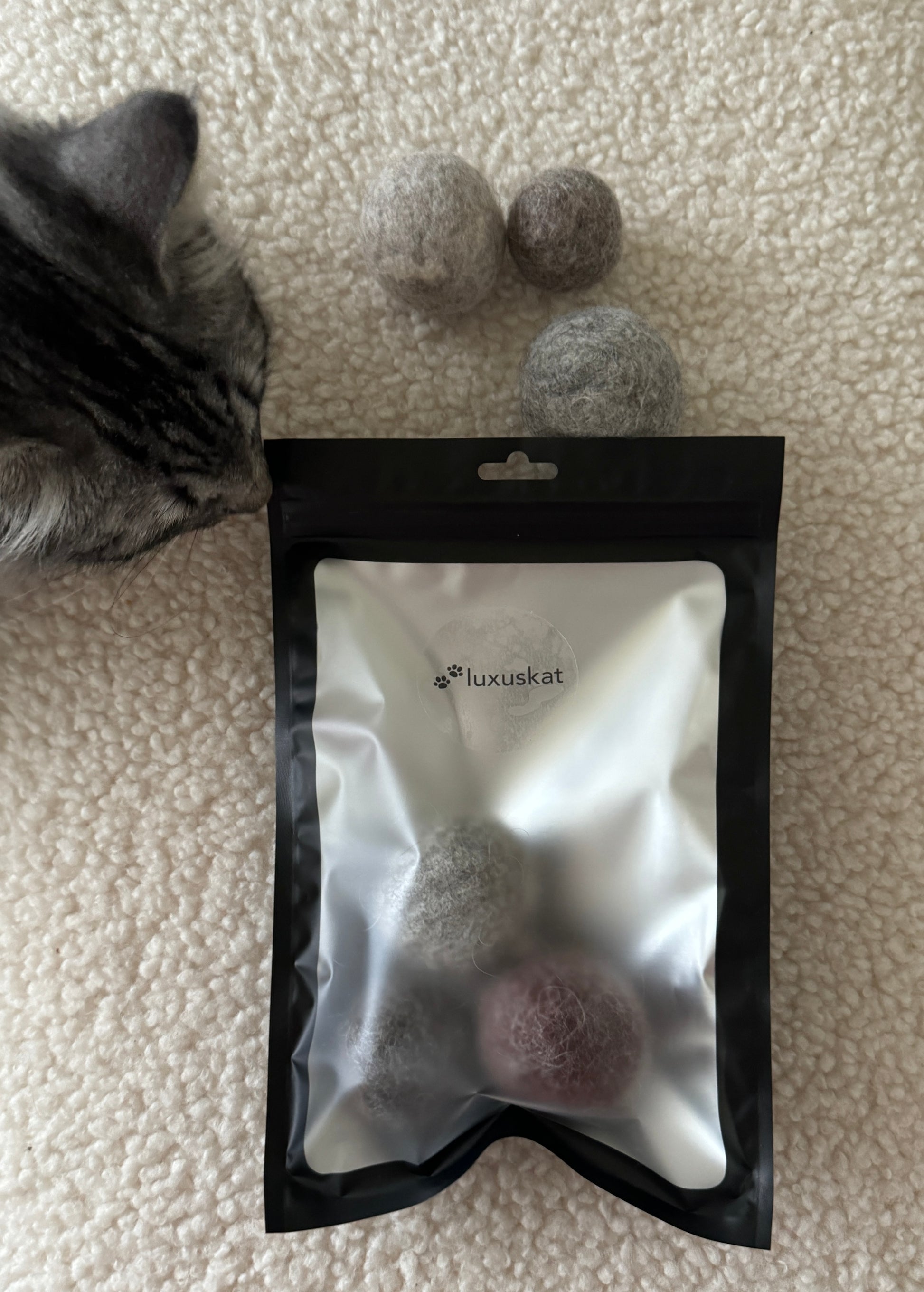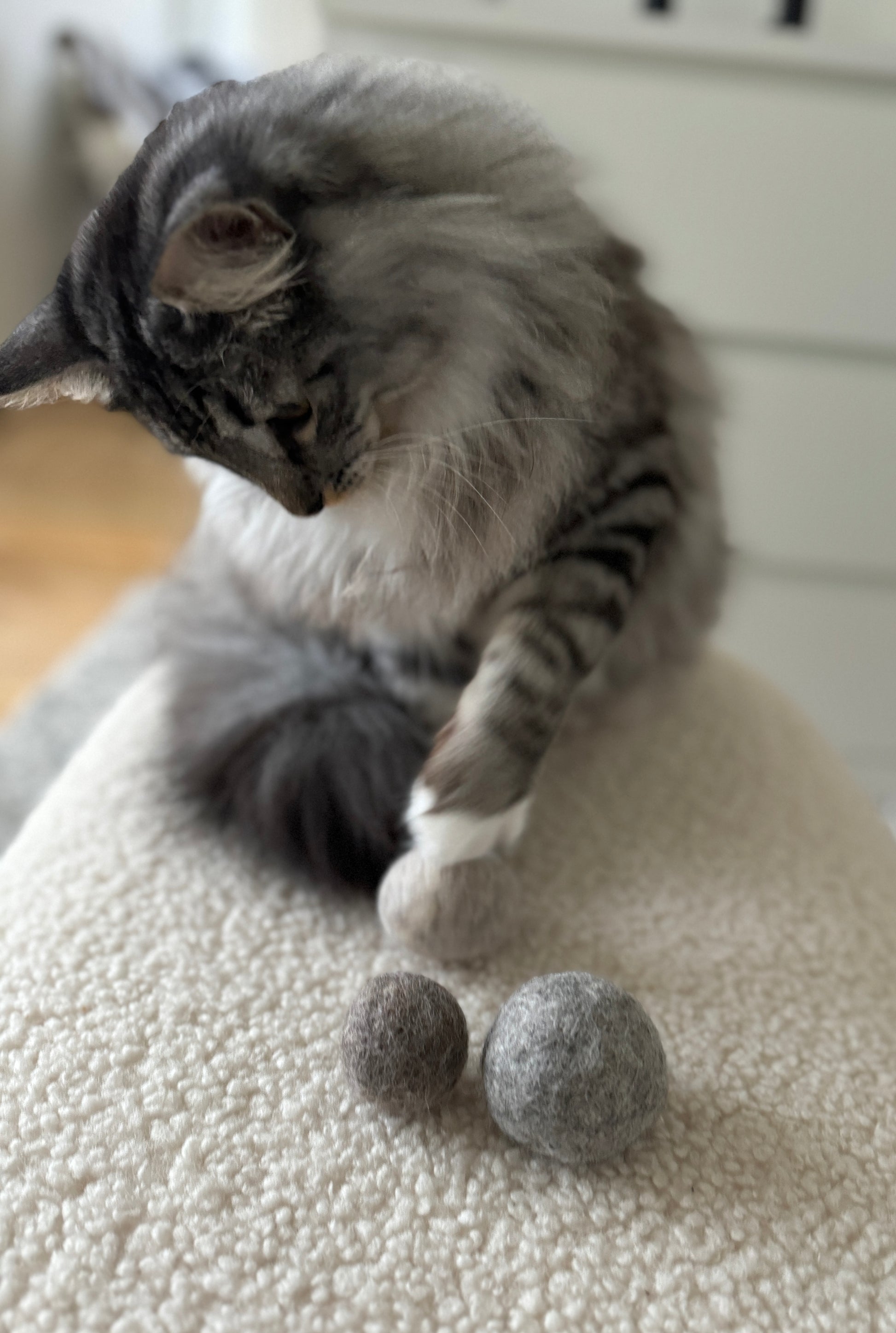 Når du køber legetøj til din kat er det godt at vide at det ikke er legetøj der enten er farligt eller som udgør en helbredsrisiko på anden måde. Vi fører kun legetøj som vi VED ikke er tilsat giftstoffer og farlige smådele, og vi støtter meget gerne lokalt. Når du køber disse bolde giver du samtidig 10 kroner til en forening der hjælper katte, vi har valgt at vi lige nu støtter "Red katten" -  foreningen "Ni liv" -  og "Foreningen Kattemødre Hjælpen - Fyn og Øerne" har du gode forslag, så send dem gerne via vores kontaktformular